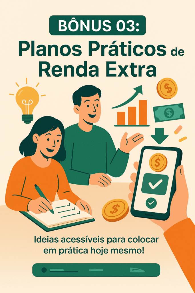 No E-book Planos Práticos de Renda Extra, você vai descobrir 12 estratégias testadas para transformar o seu tempo livre em renda.