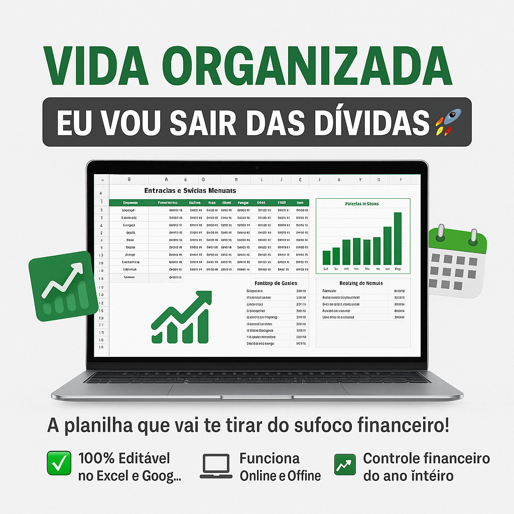 Por apenas R$19,90, você vai colocar ordem no caos com a Planilha Vida Organizada — simples, prática e pensada pra quem cansou de viver no aperto.